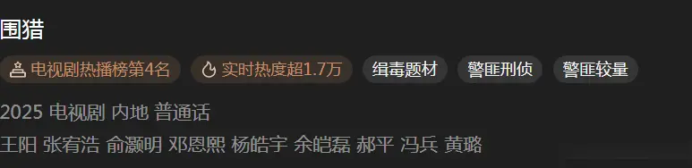 总的来说,《围猎》以“硬核缉毒题材+狼人杀身份博弈”破圈,有望成为今年刑侦悬疑剧的爆款。